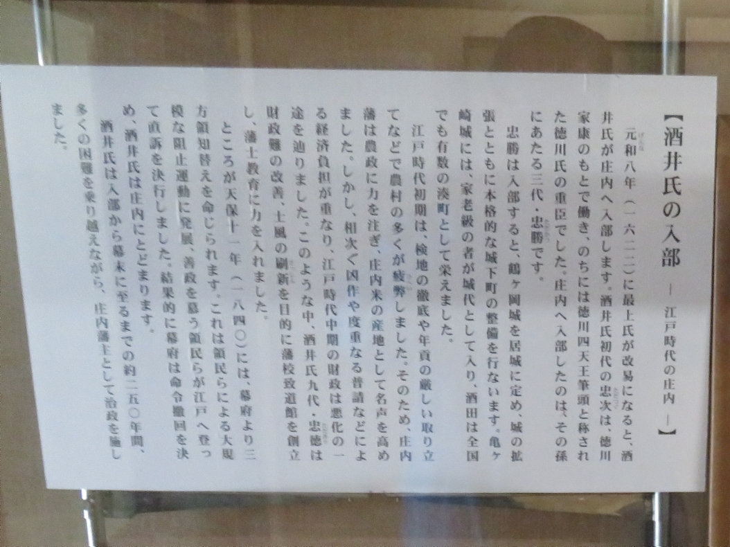| 致道博物館の江戸時代の酒井氏の入部の説明(2018/10/27) | |