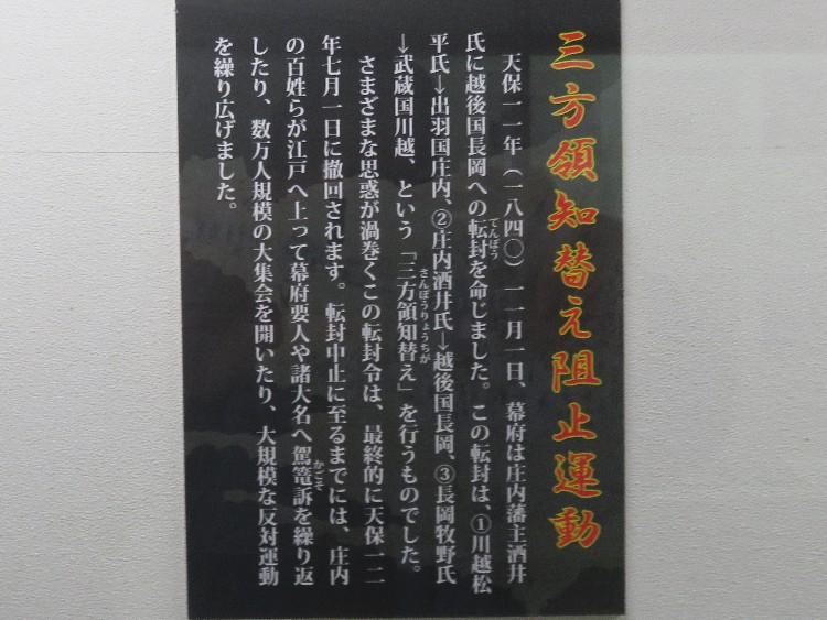 | 致道博物館の庄内藩主の領地替え阻止運動の説明(2018/10/27) | |