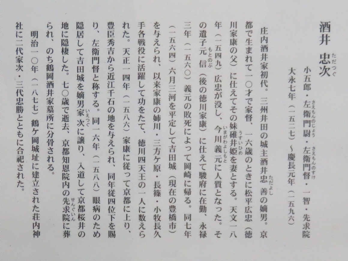 | 致道博物館の酒井忠次の説明(2018/10/27) | |