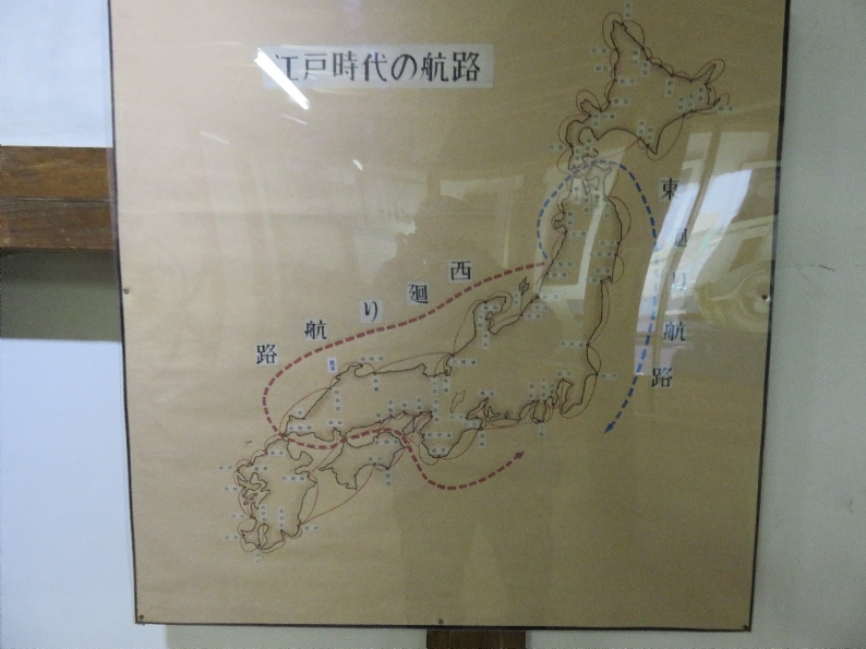 | 致道博物館の民具の蔵の中の北前船の航路の説明(2018/10/26) | |