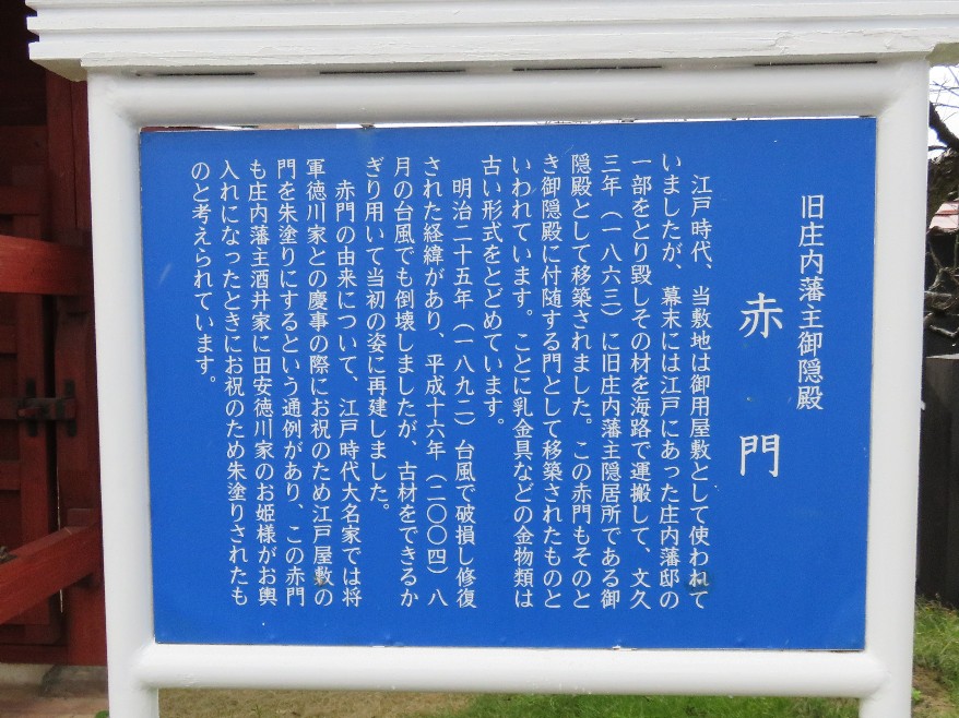 | 致道博物館の受付横の赤門の説明版(2018/10/27) | |