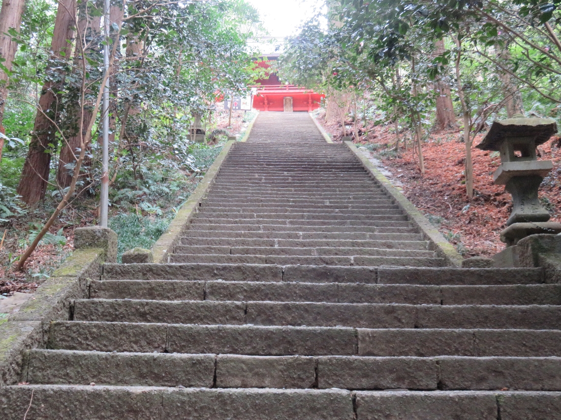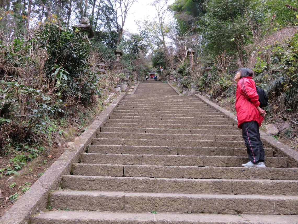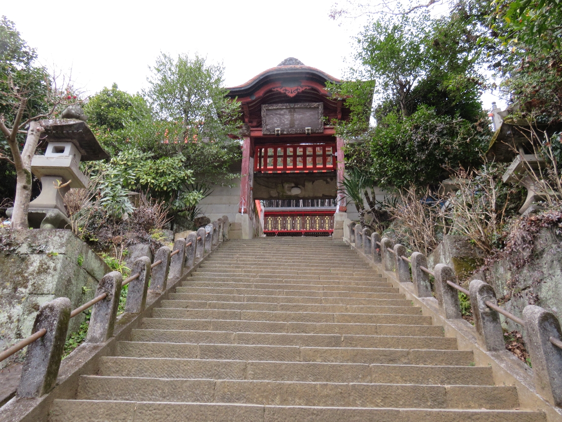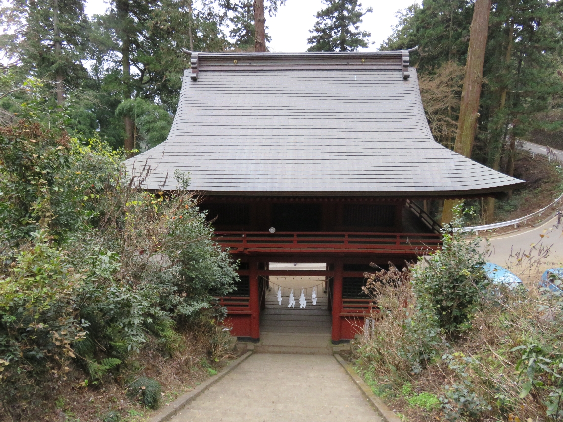 大平山神社の随身門の先の石段から勅使門を見上げる(2016/1/6) |