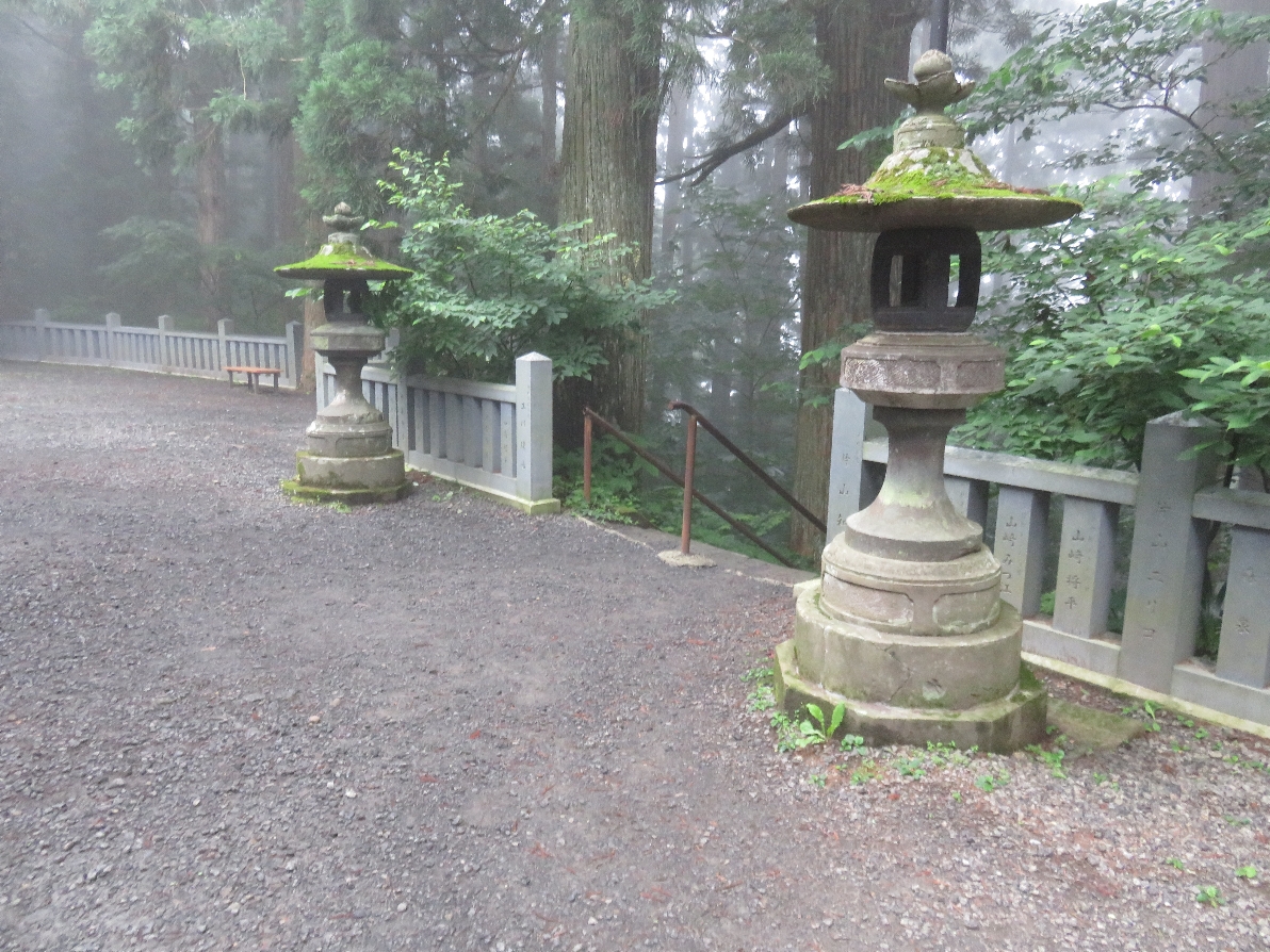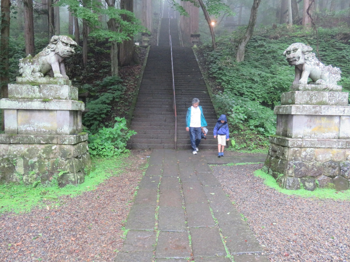 戸隠神社の宝光社の長い石段と手前の狛犬(2017/7/29) |