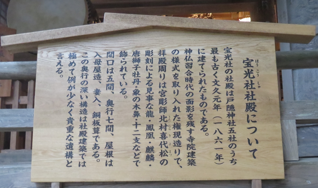 戸隠神社の宝光社の社殿の説明版(2017/7/29) |