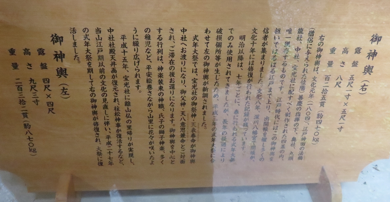 戸隠神社の宝光社の2つの神輿の説明版(2017/7/29) |