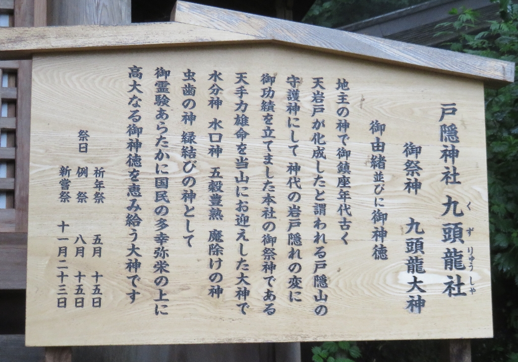 戸隠神社の九頭龍社の説明版(2017/7/28) |