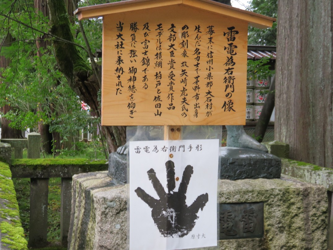 諏訪大社上社本宮の雷電為衛門の像の説明(2019/10/8) |