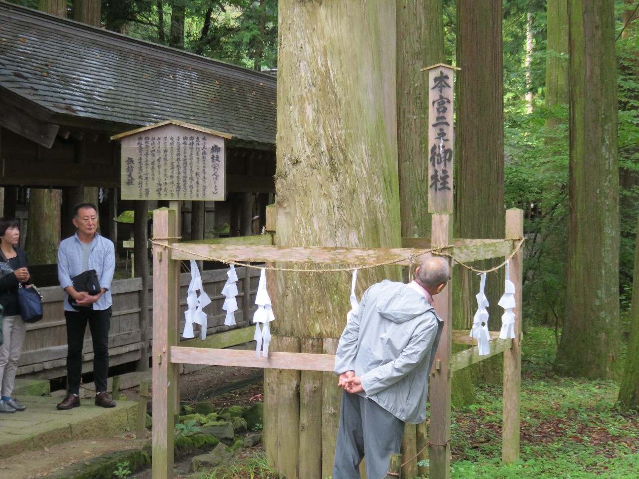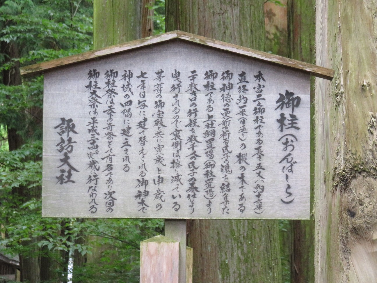 諏訪大社上社本宮の二の御柱の説明(2019/10/8) |