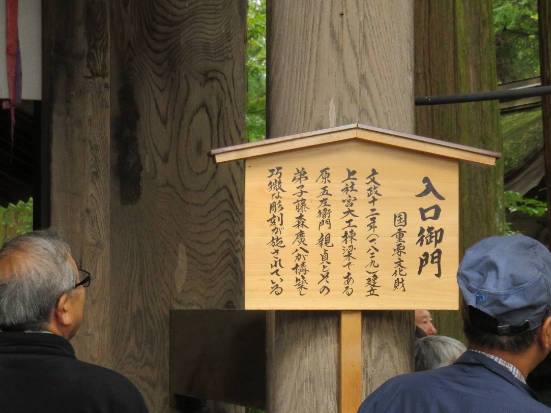 諏訪大社上社本宮の四脚門の説明(2019/10/8) |