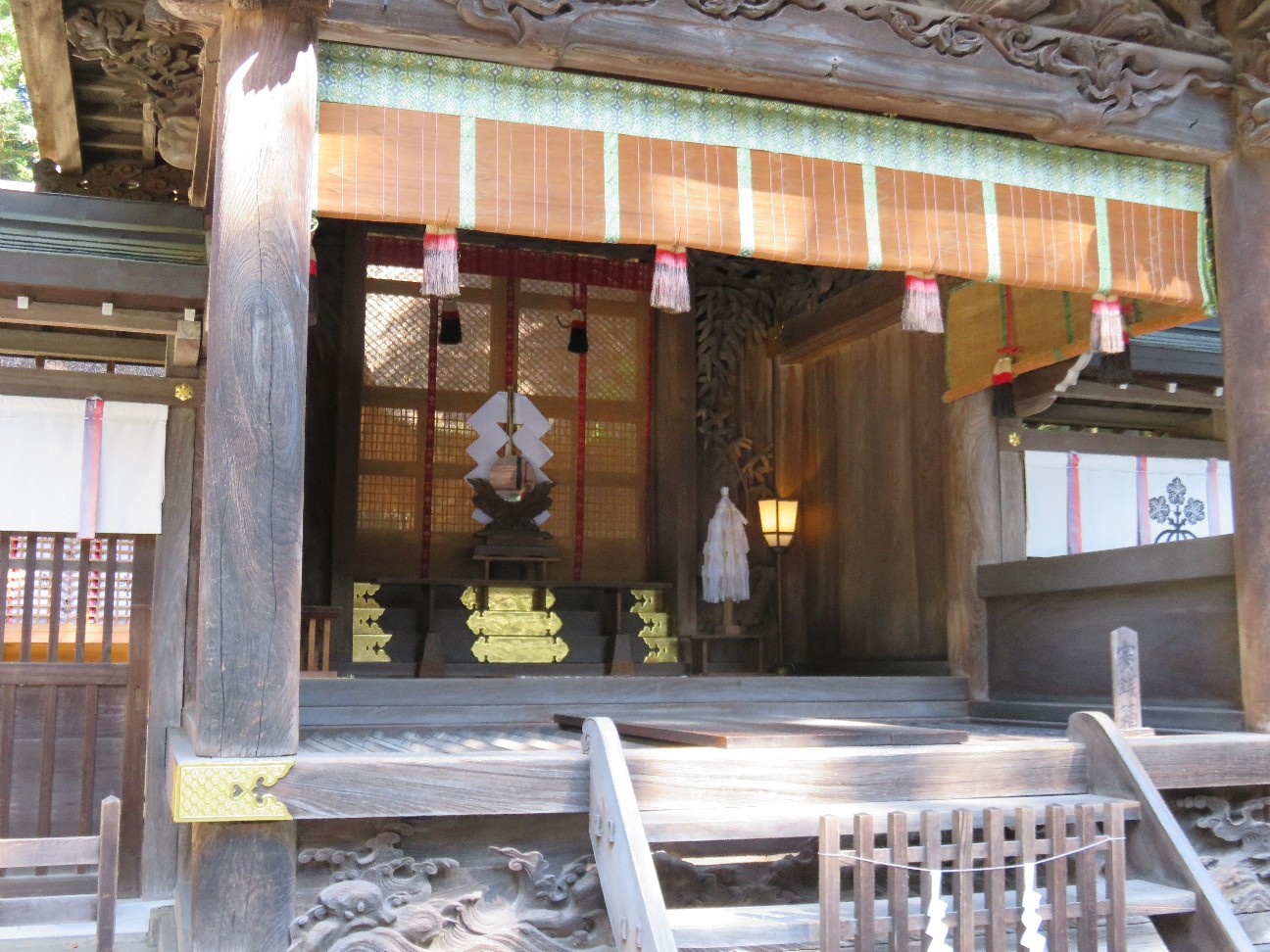 春宮は直ぐ近くを小川が流れ四宮のなかでは最も静かで落ち着いた雰囲気の境内となっています。お社の中核をなす幣拝殿は江戸時代の1780年に建造されたもので、欄干に施された竜の彫刻は見応えがあります。