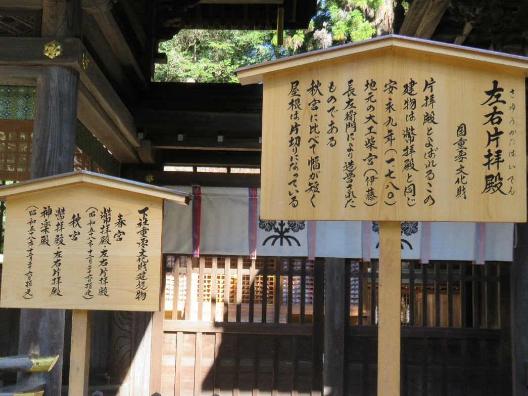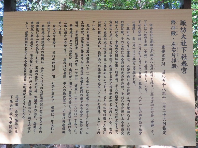 諏訪大社下社春宮の左右の片拝殿の説明(2019/10/9) |