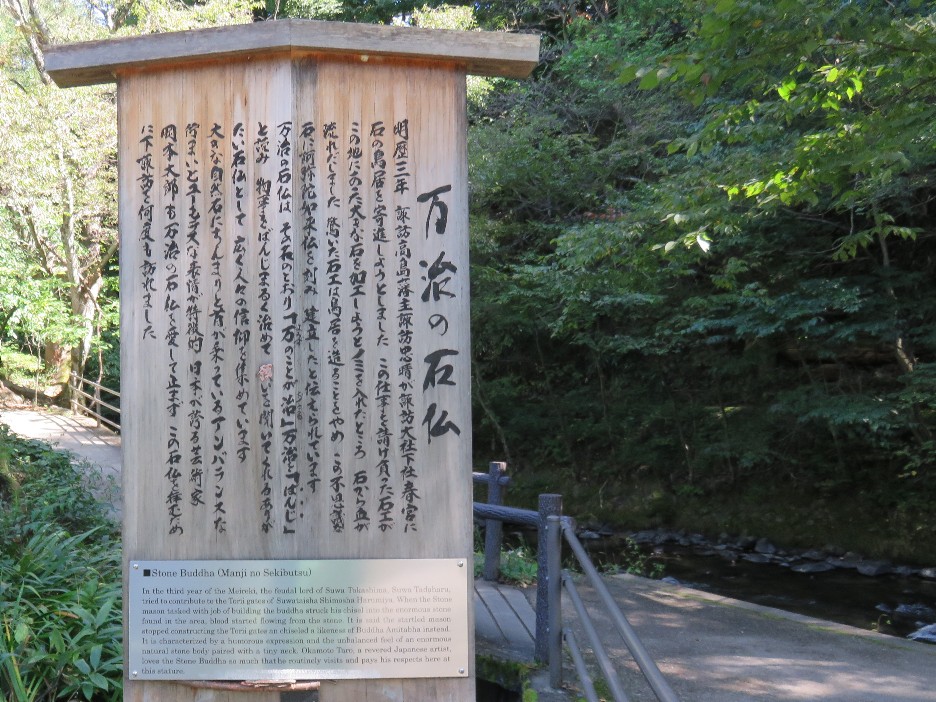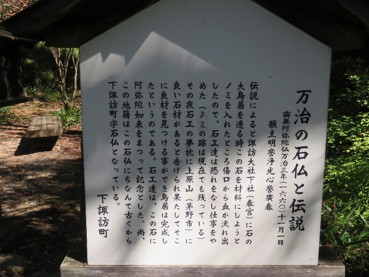 下諏訪町の諏訪市の万治の石仏の説明版(2019/10/9) |