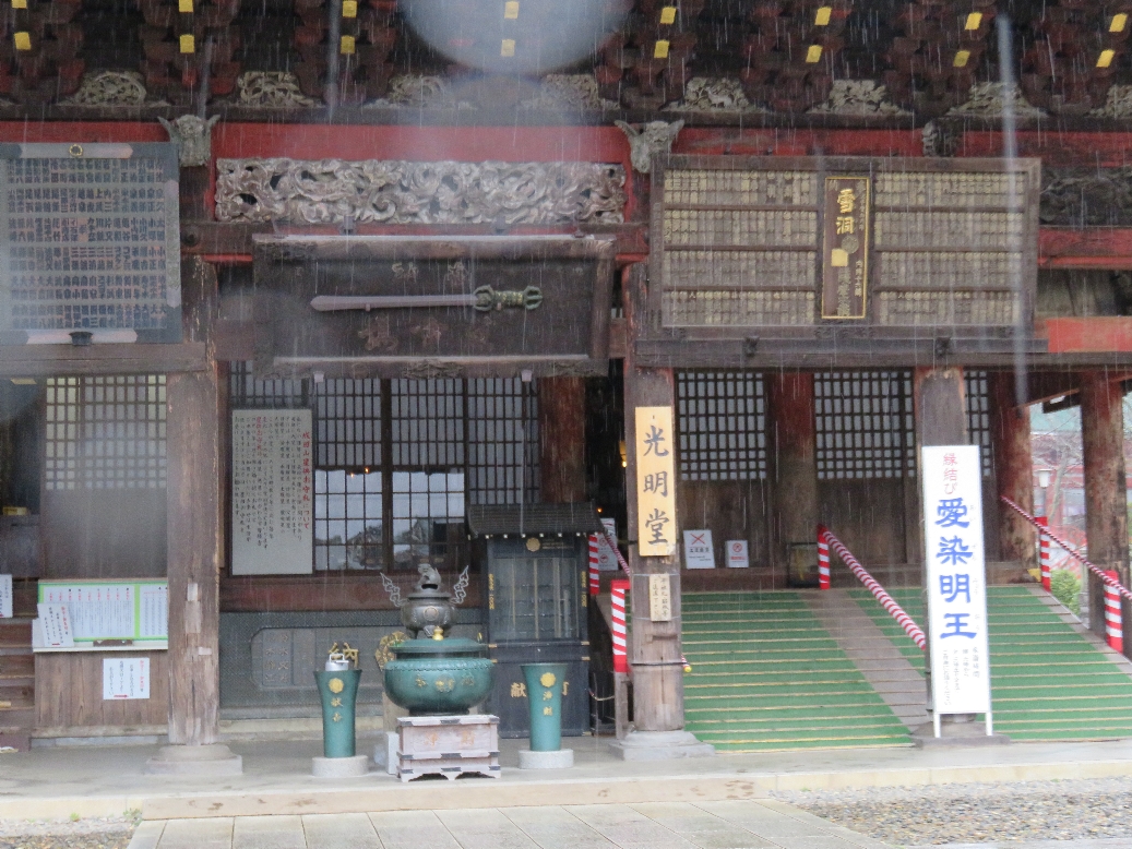 | 成田山新勝寺の光明堂・・・・・1701(元禄14)年に建立された重要文化財です。 釈迦堂の前の本堂であり、江戸時代中期の貴重な建物です。 大日如来、愛染明王、不動明王が奉安されています。 後方には奥之院の洞窟があり、毎年、祇園会に開扉されます。(2020/3/14) | |