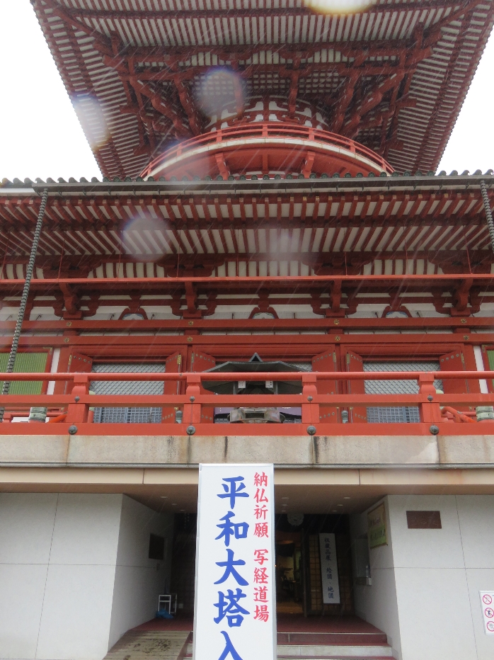 | 成田山新勝寺の平和の大塔(へいわのだいとう)・・・・・1984(昭和59)年に建立された平和の大塔は、真言密教の教えを象徴する塔です。 総高は58mで、1階は大塔入口、成田山の歴史展、写経道場各種受付があります。 2階の明王殿には、大塔の御本尊不動明王、四大明王、昭和大曼荼羅、真言祖師行状図が奉安され、3・4階の経・法蔵殿には、ご信徒による掛仏、5階の金剛殿には五智如来が奉安されています。(2020/3/14) | |