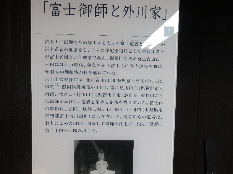 江戸時代の最盛期には86軒の御師が上吉田地区に住まいを構え富士山信仰を支えていました。