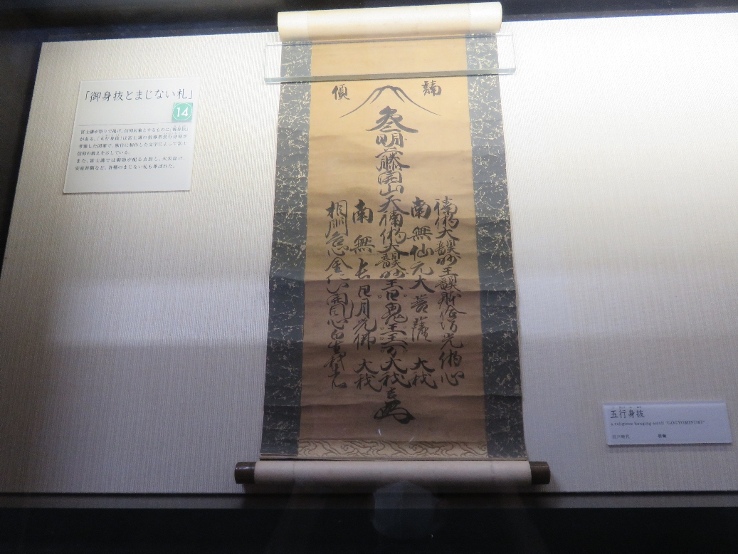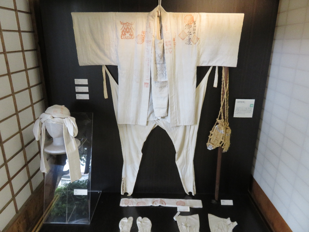 御師旧外川家住宅の中のかっての富士登山の装束の展示(2020/9/17) |