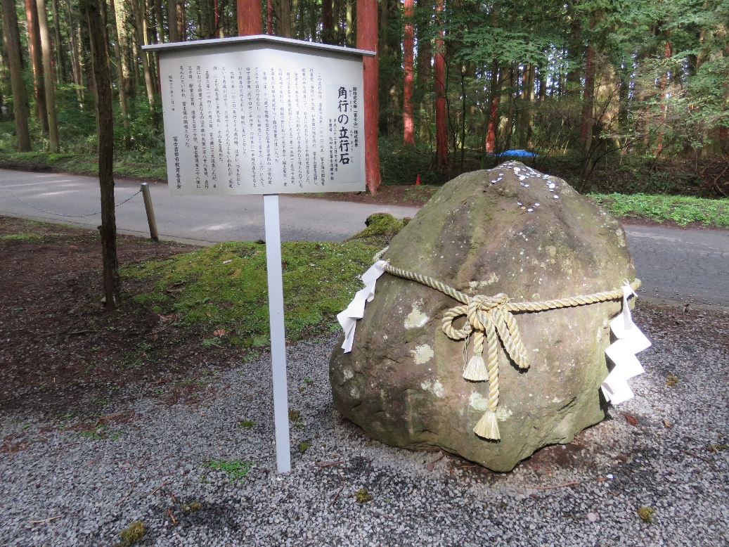 北口本宮冨士浅間神社の参道右の角行の立行岩の説明版(2020/9/17) |