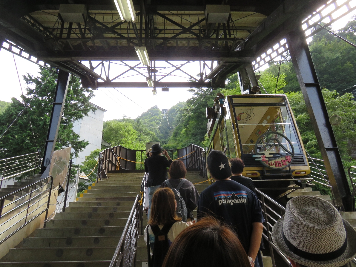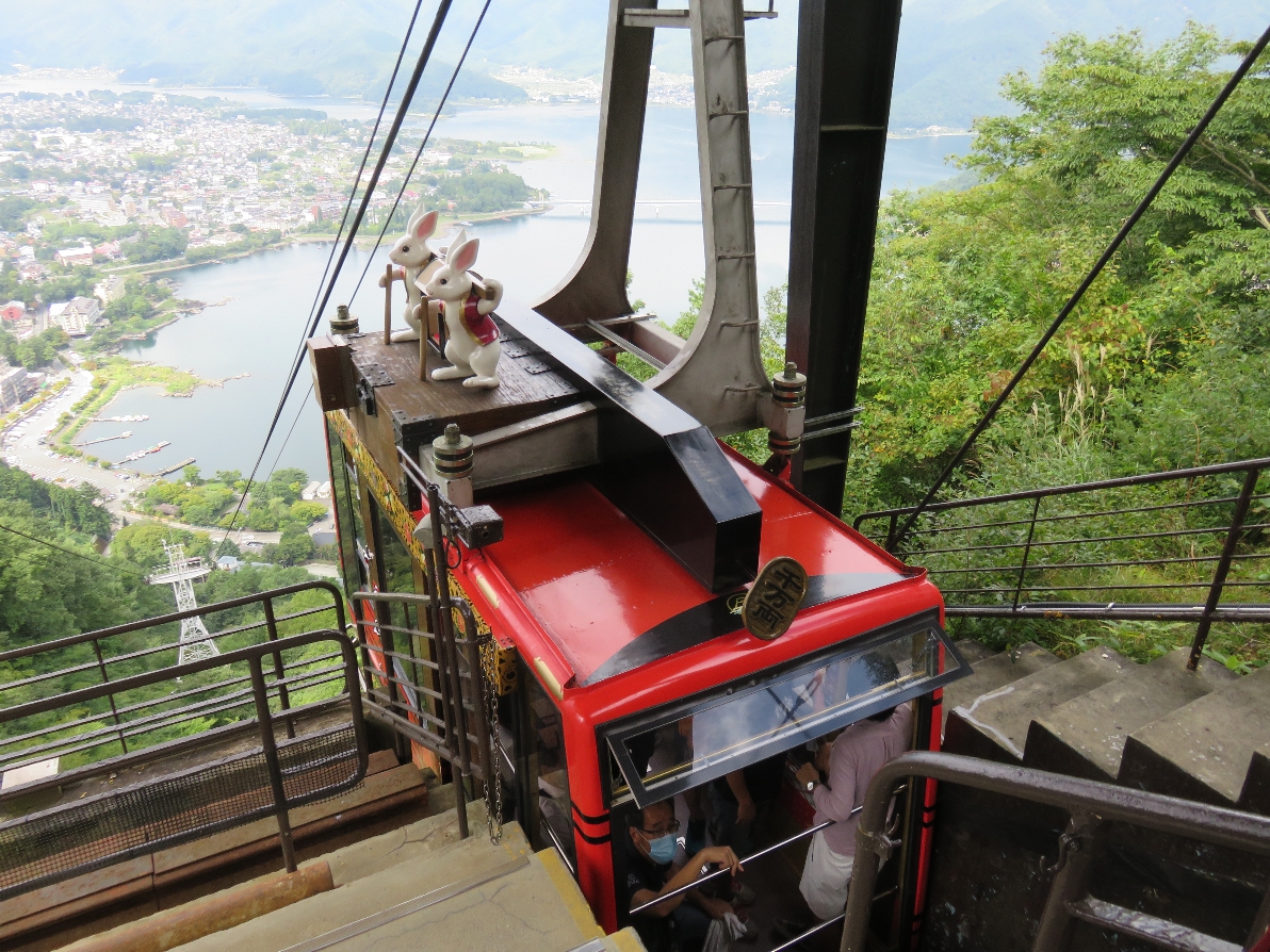 河口湖富士山パノラマロープウェイにコロナウイルスのマンエン防止の為マスクをして乗ります(2020/9/19) |
