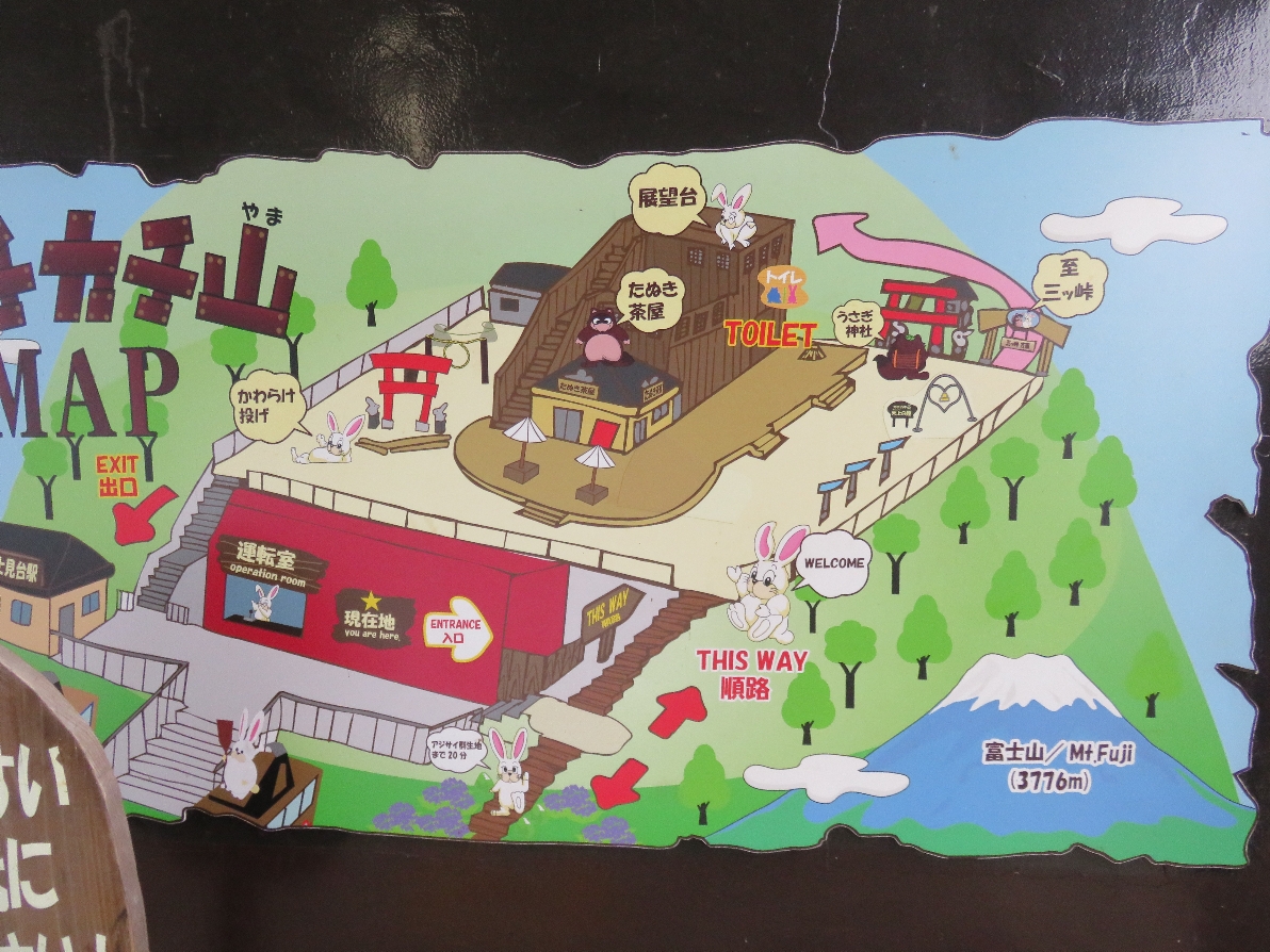 河口湖富士山パノラマロープウェイの天上山の山頂のカチカチ山の案内図(2020/9/19) |