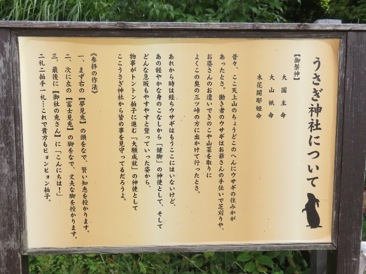 河口湖富士山パノラマロープウェイの天上山の山頂のうさぎ神社の説明版(2020/9/19) |