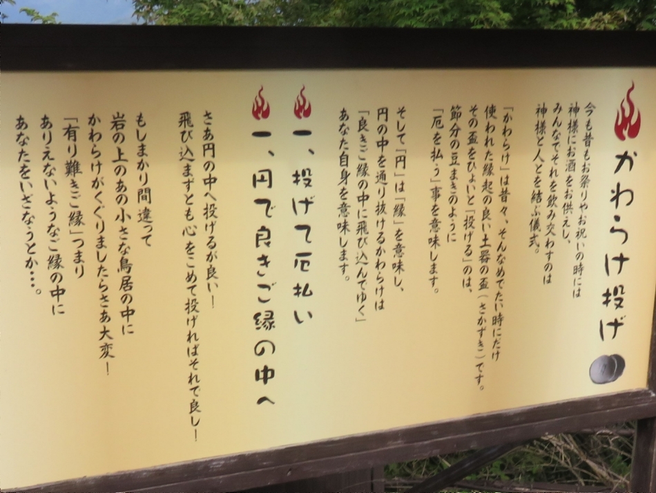 河口湖富士山パノラマロープウェイの天上山の山頂の「かわらけ投げ」の説明版(2020/9/19) |