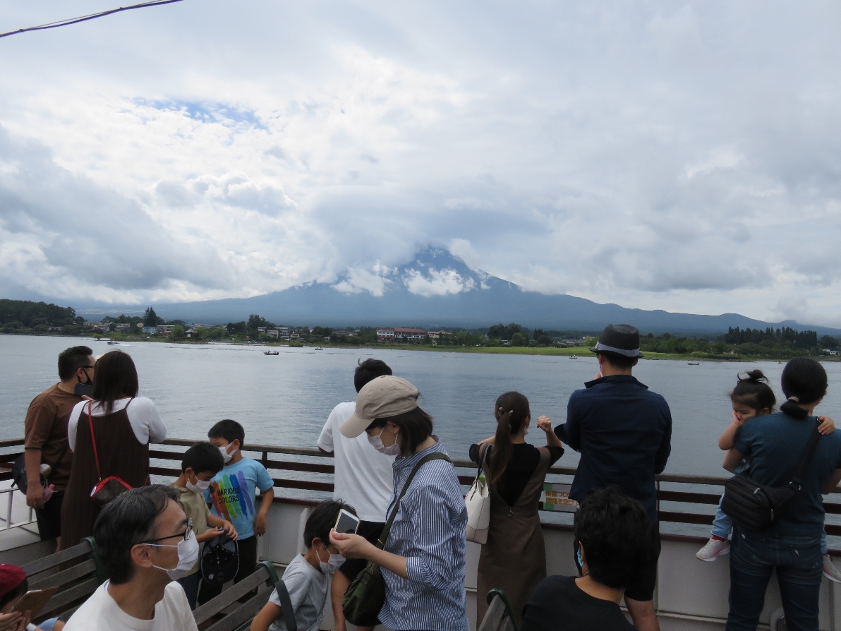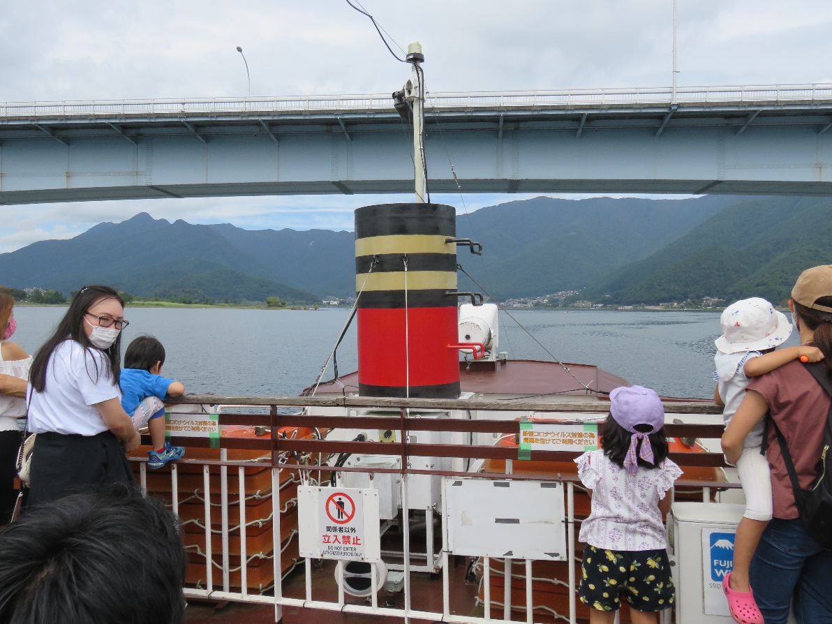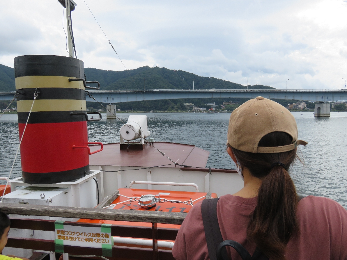 河口湖遊覧船アンソレイユ号の船上にて(2020/9/19) |