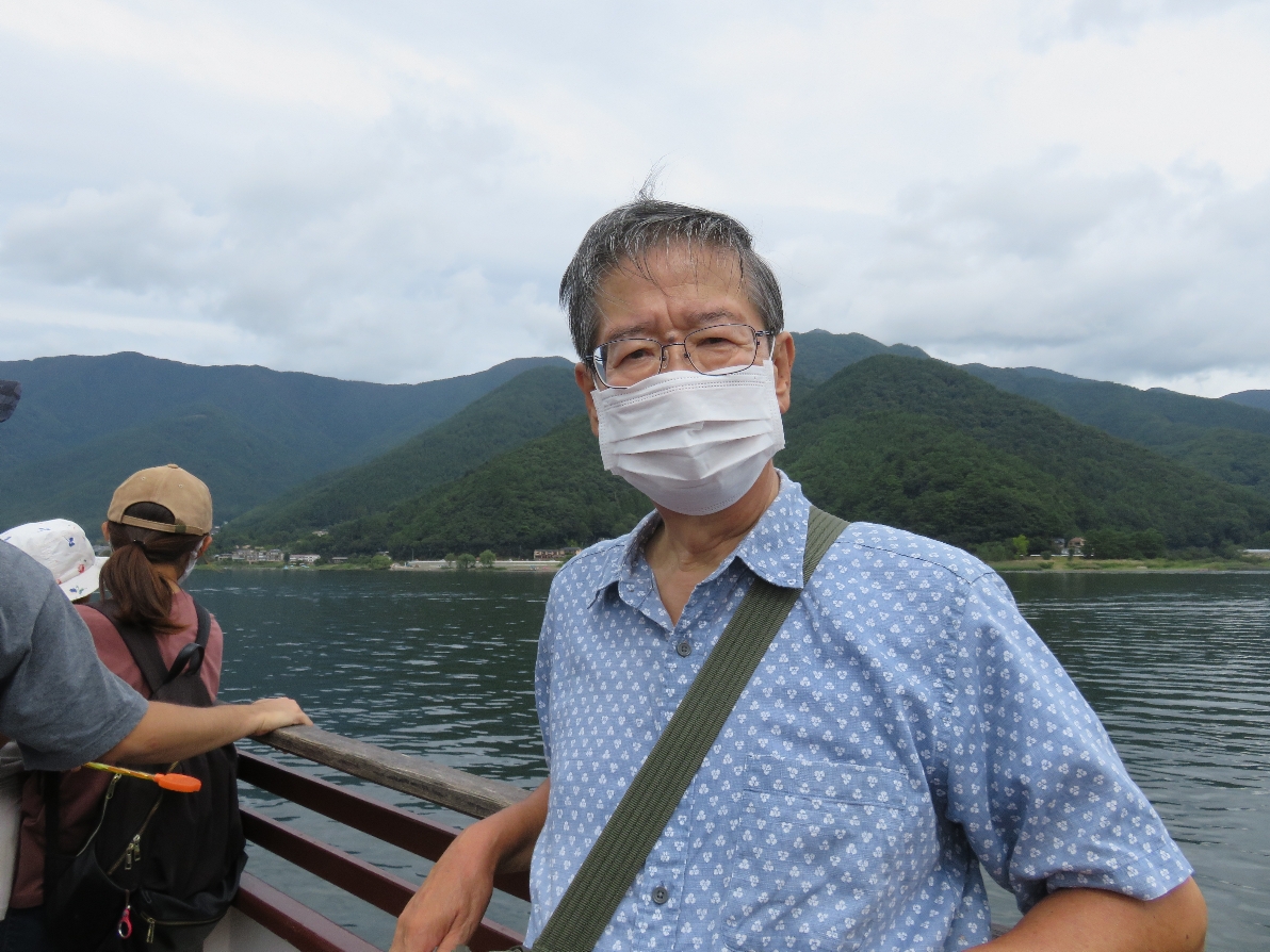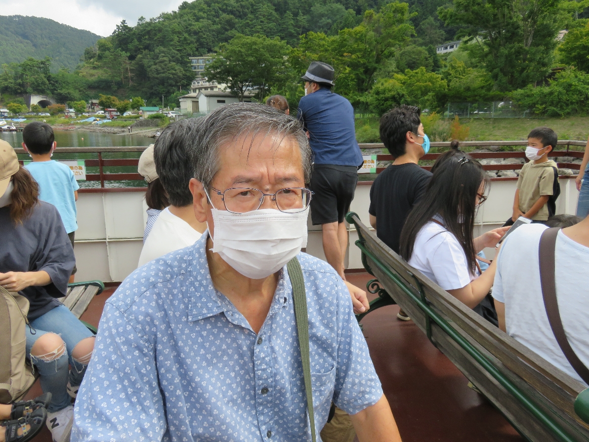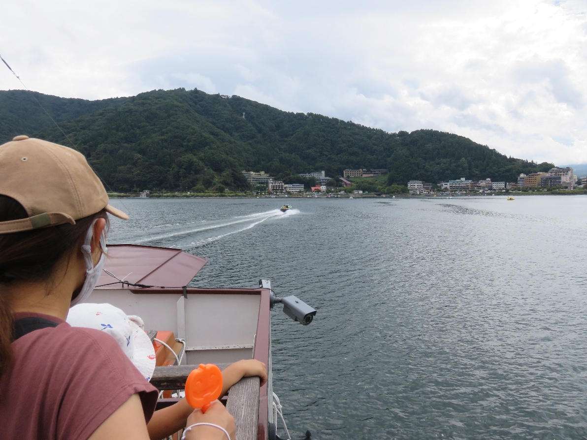 河口湖遊覧船アンソレイユ号の船上にて(2020/9/19) |