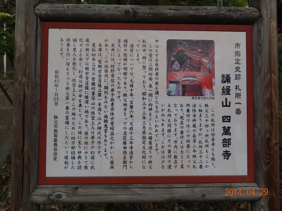誦経山四萬部寺の説明版(2014/4/29) |