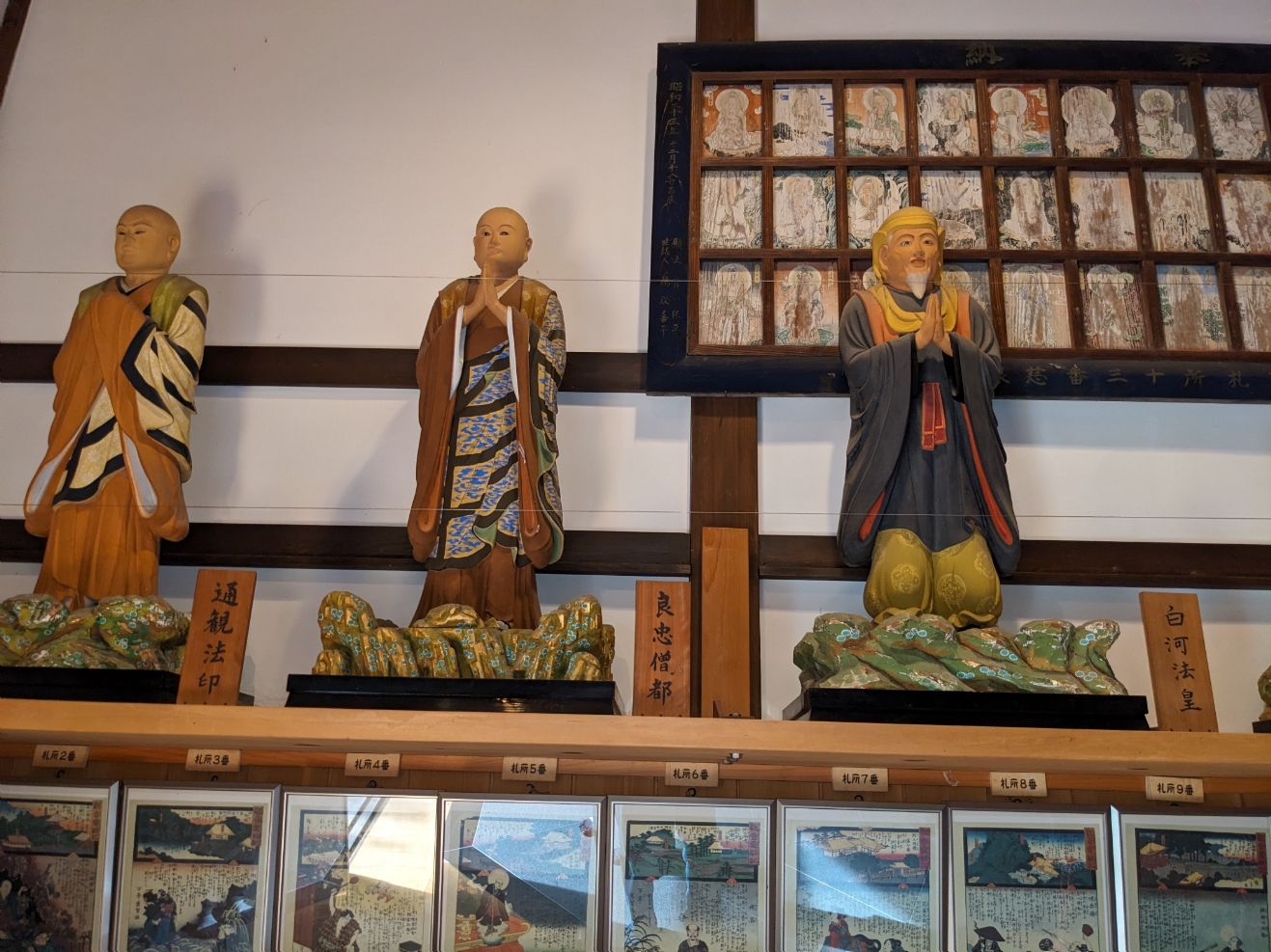 慈眼寺の経蔵の中の納額・・・納額には下に「秩父宮側 三千女」と書かれている。1988年から25年かけて描き、34札所すべてに秩父市宮側町の「浅賀ちょうちん店」の浅賀三千子さんが奉納した額との事です(2024/6/8) |