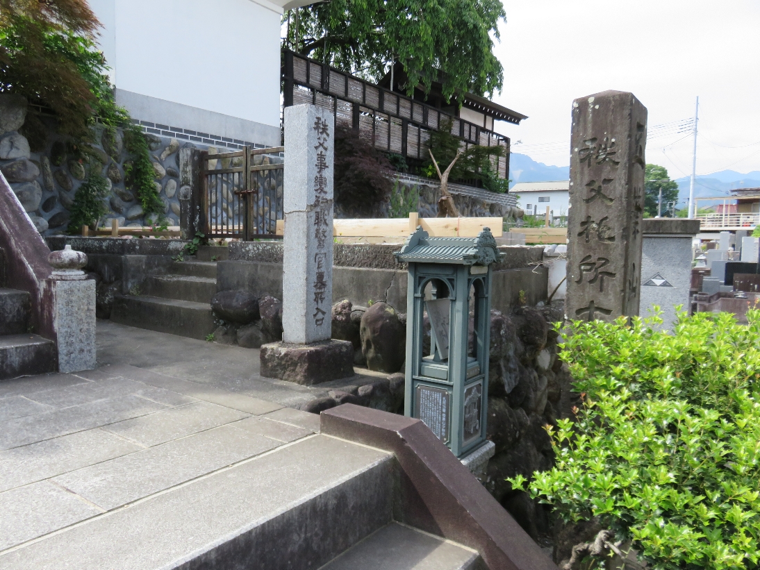 少林寺の山門の入口とその右にある秩父事件殉職警官の墓入口(2024/6/9) |