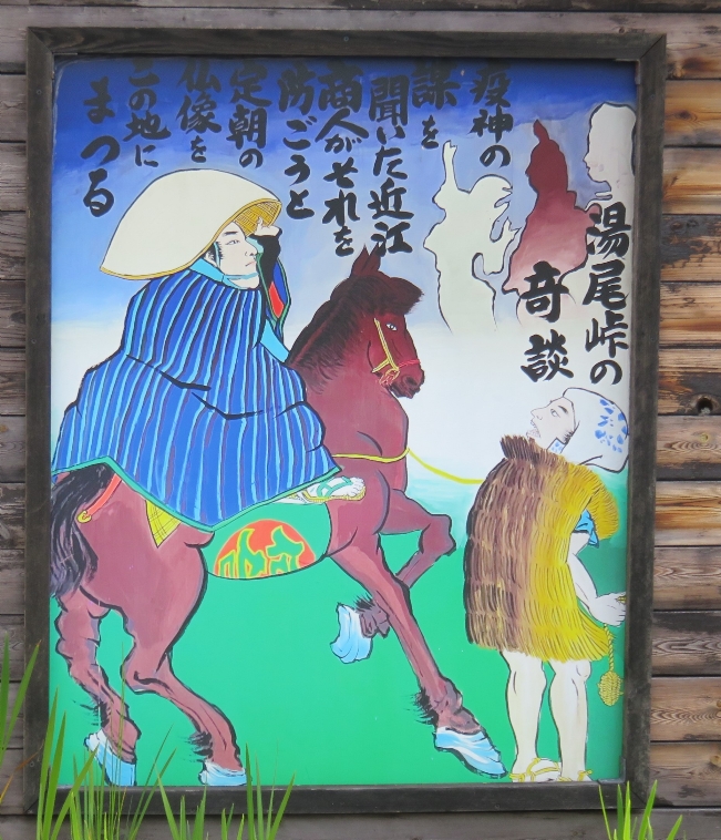 ●湯尾峠の奇談・・・・・その昔、近江堅田に商人が、東国の疫病を免れるために、仏像を専門に作る“仏師”の定朝(じょうちょう)に比叡山の観音像を授けられ運ぶよう言われたものとされています。