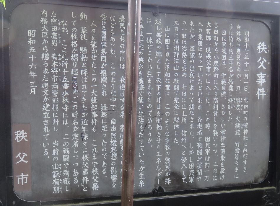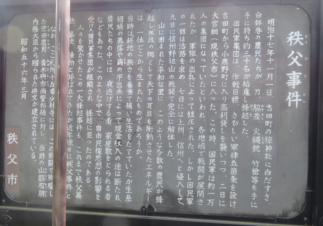また、すぐ近くには秩父事件殉職警官墓所入口と刻まれたの石標も見えます。(秩父札所連合会のHPより)