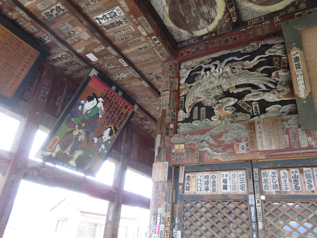 定林寺の観音堂の納額・・・納額には下に「秩父宮側 三千女」と書かれている。1988年から25年かけて描き、34札所すべてに秩父市宮側町の「浅賀ちょうちん店」の浅賀三千子さんが奉納した額との事です(2024/6/9) |