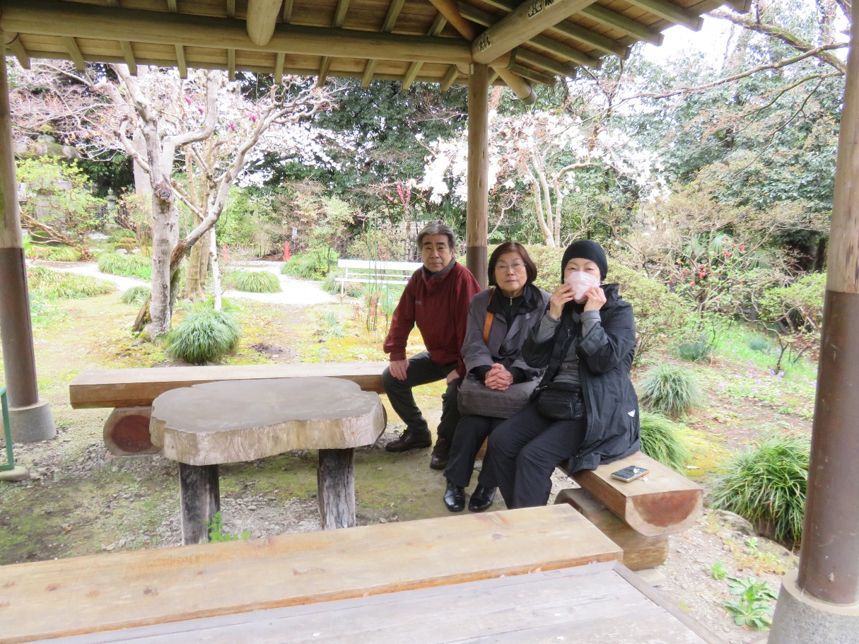 法王山岩之上堂の庭のあずまやにて一休み(2023/3/25) |