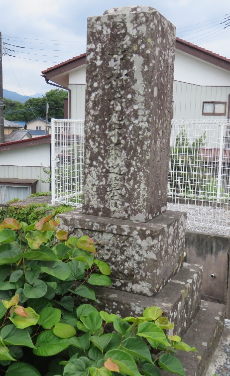 観音寺の入口前の国道を挟んで反対柄にある秩父地方の地芝居役者・中村十九十郎(ともじゅうろう)の墓(左側の石塔)(2024/6/9) |