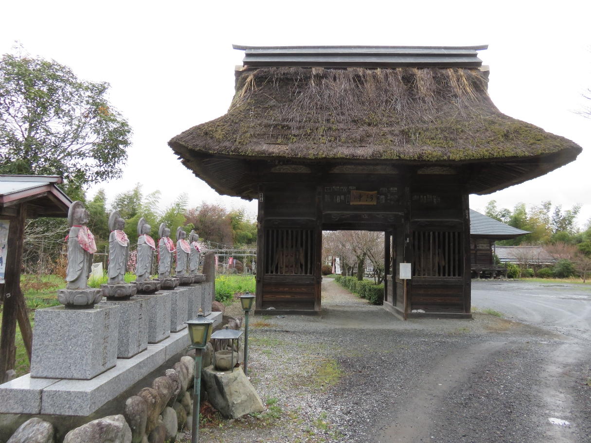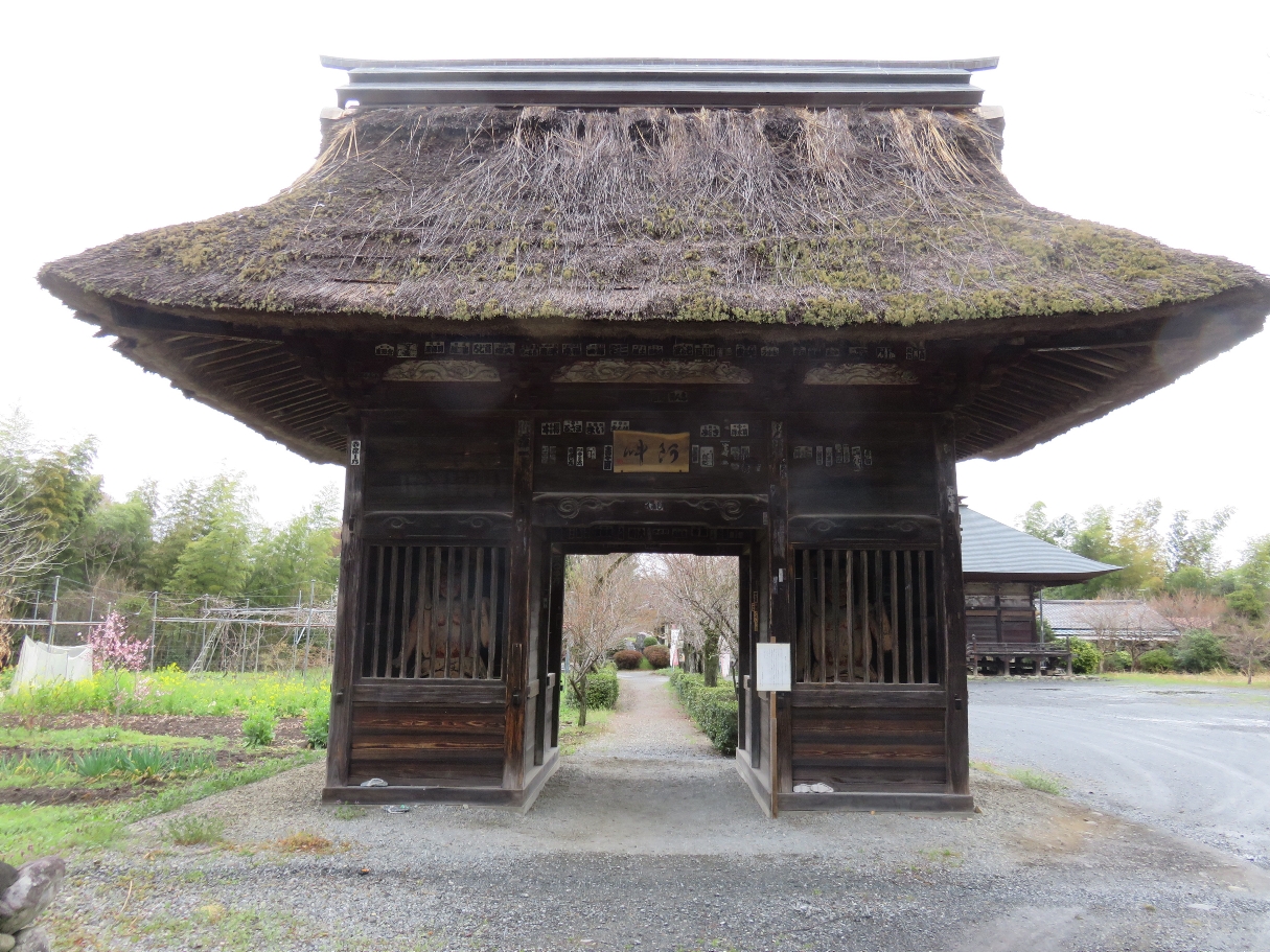 ●仁王門と観音堂・・・・・静かな田舎道を行くと茅葺きの仁王門が現れる。左右の仁王像は大きな目を見開いている。可愛いというか、ひょうきんな童子のような表情には思わず微笑んでしまう。観音堂は、江戸中期の華麗な建築で、正面の唐戸には風神雷神、迦陵頻伽(かりょうびんが)の浮彫りを見ることが出来る。(秩父札所連合会のHPより)