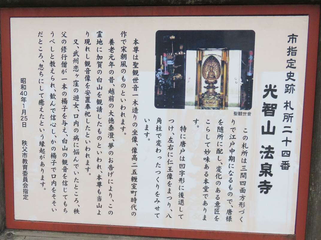 ●光智山法泉寺(こうちさんほうせんじ)・・・・・住所 埼玉県秩父市別所1586札所24番 光智山 法泉寺(こうちざん ほうせんじ)のはじまりは奈良時代。