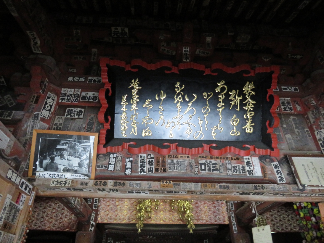 法泉寺の観音堂の納額・・・・・納額には下に「秩父宮側 三千女」と書かれている。1988年から25年かけて描き、34札所すべてに秩父市宮側町の「浅賀ちょうちん店」の浅賀三千子さんが奉納した額との事です(2024/6/9) |