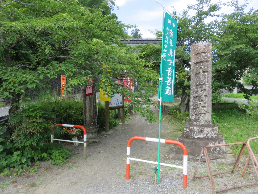 久昌寺の参道入口の仁王門と結界石(2024/7/7) |
