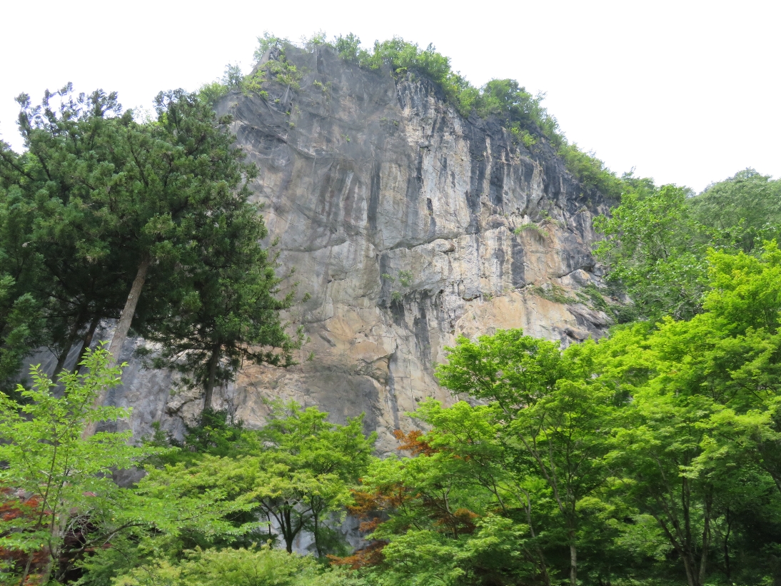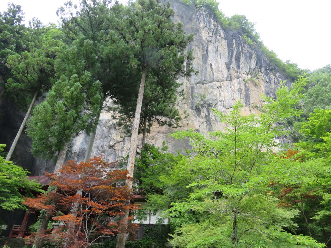 橋立堂の観音堂の裏の巨大な約65mもの高さの岸壁(2024/7/6) |