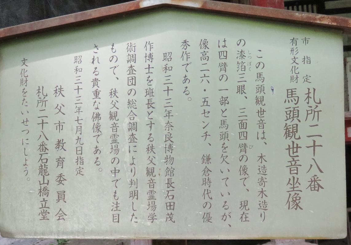 橋立堂の観音堂の馬頭観音の説明版(2024/7/6) |