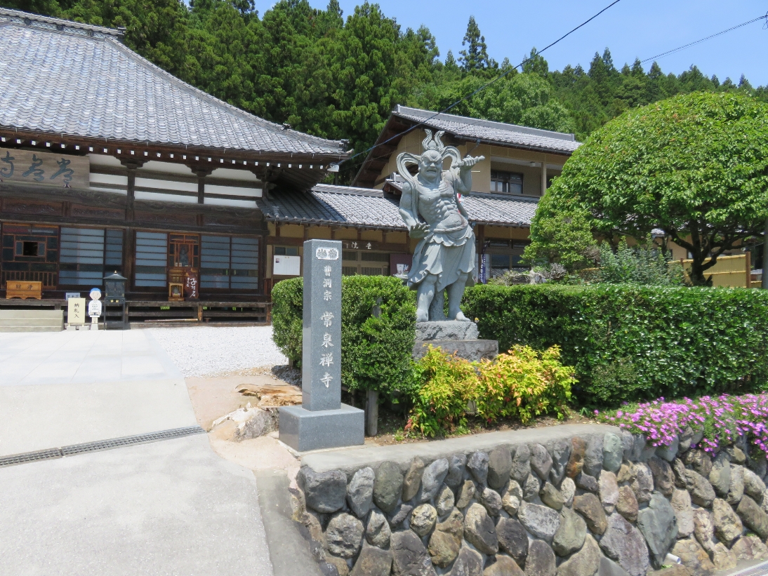 常泉寺の本堂と手前の仁王像(2024/6/8) |