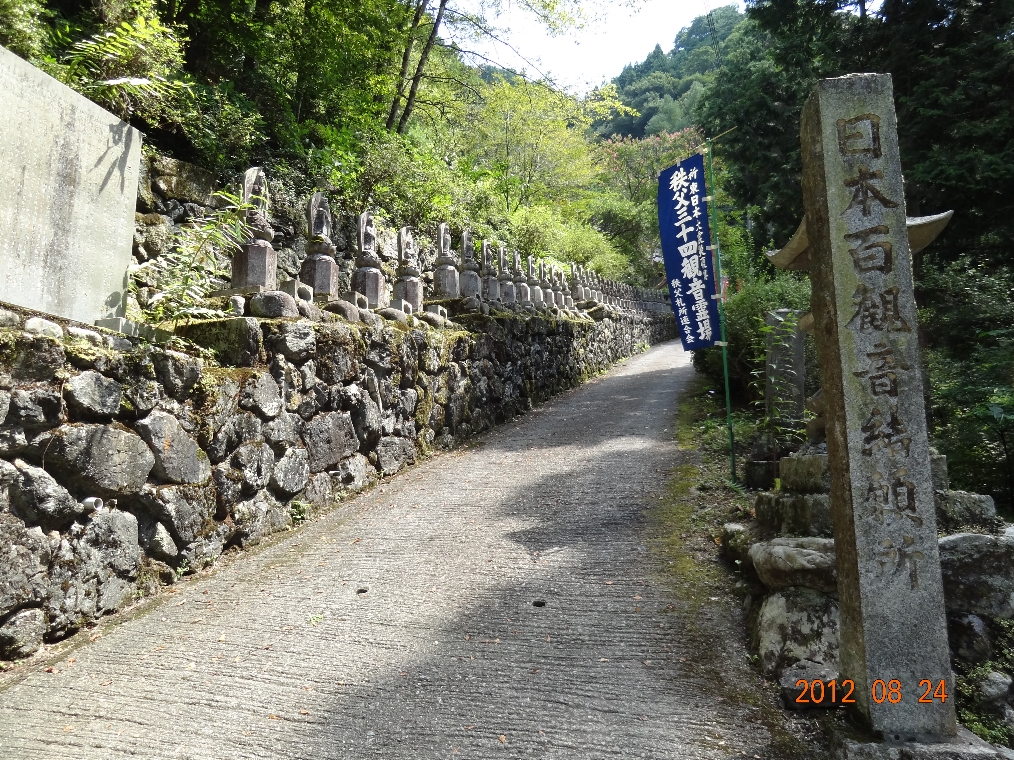 日沢山水潜寺の参道入口の三十三観音の並んでいる坂道(2012/8/24) |