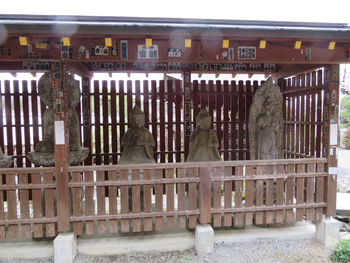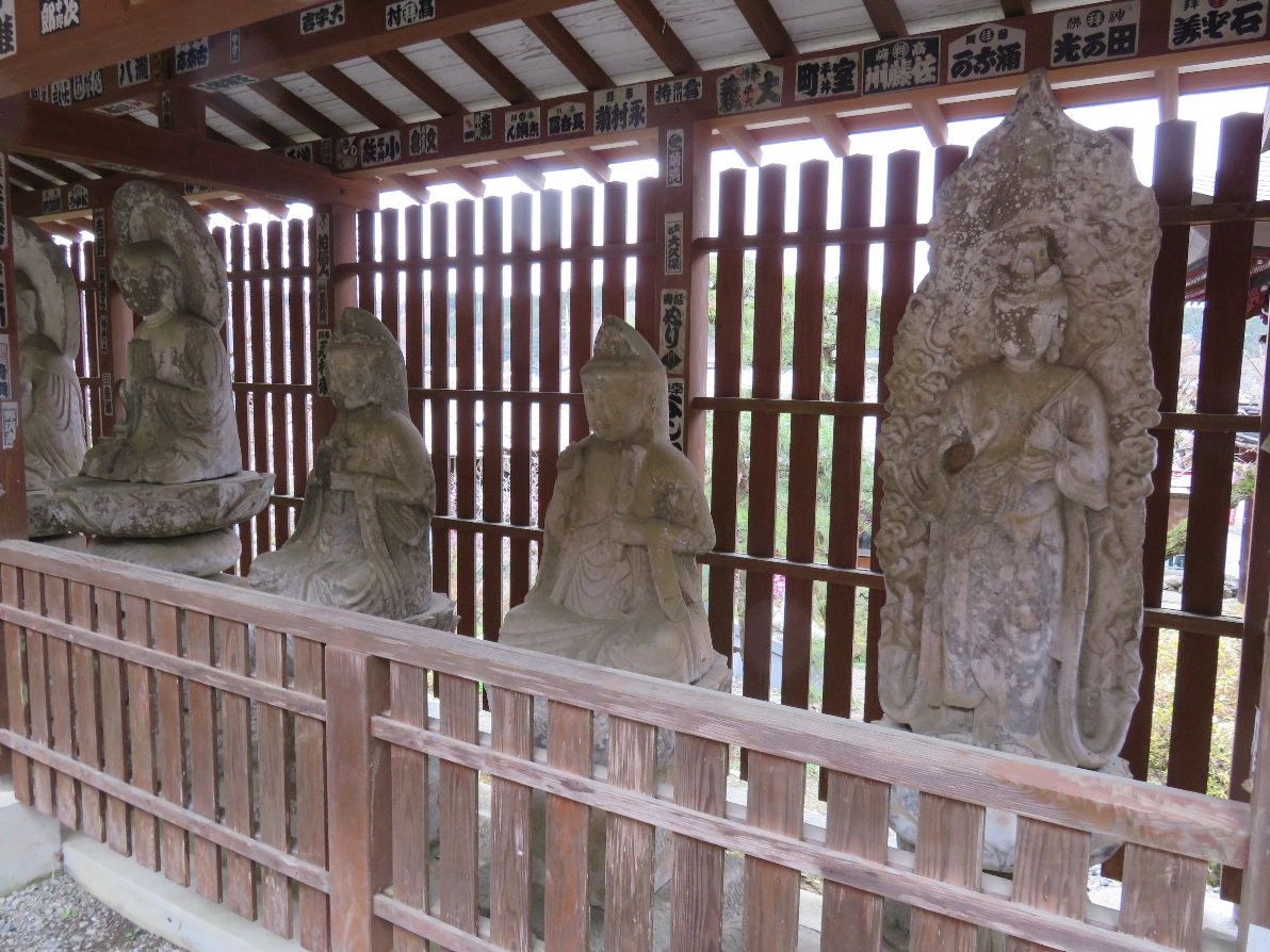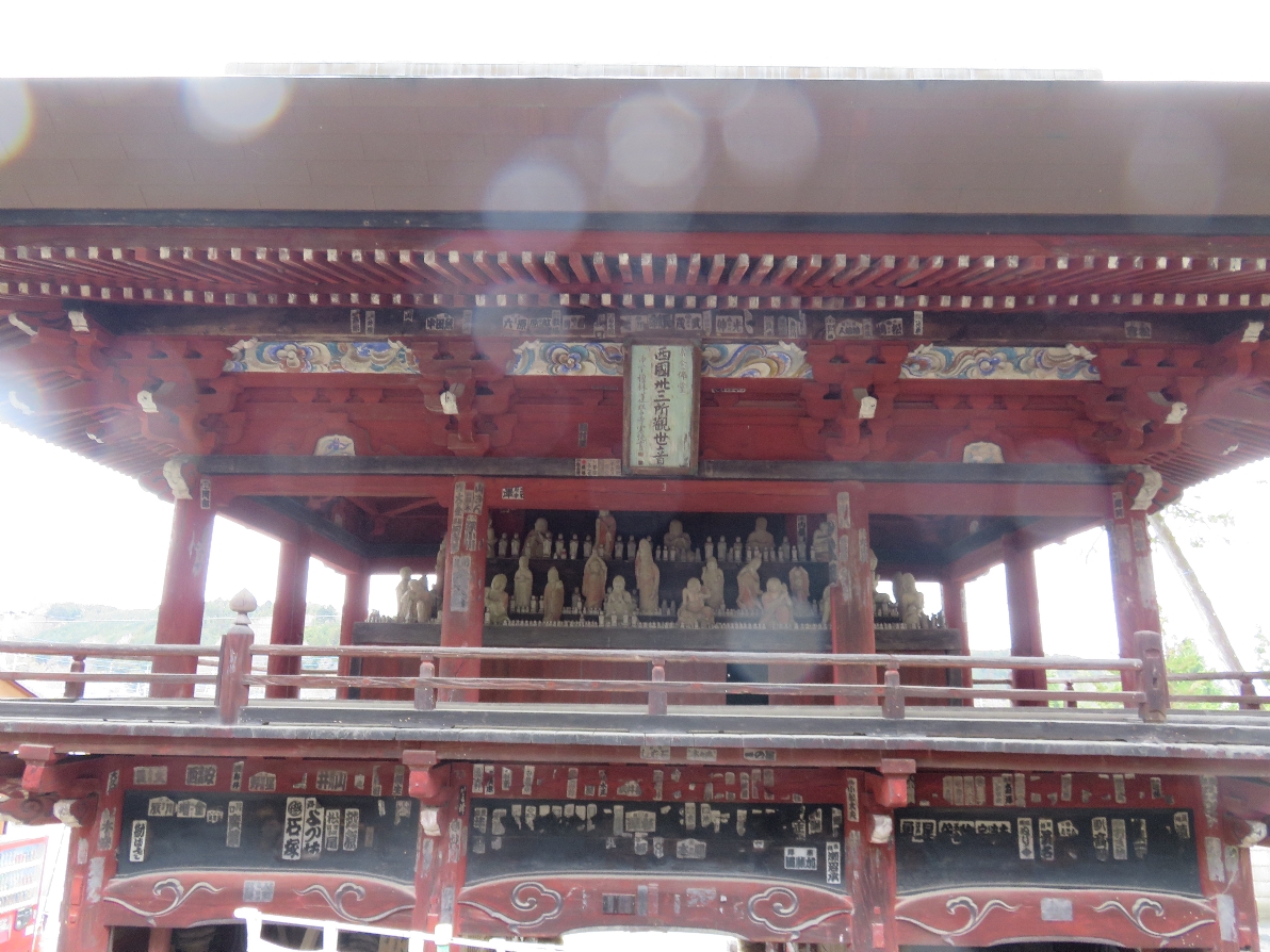 高谷山金昌寺の山門の2階部分には、西国三十四箇所の御本尊・五百羅漢の石仏が並んでいます。(2016/4/5) |