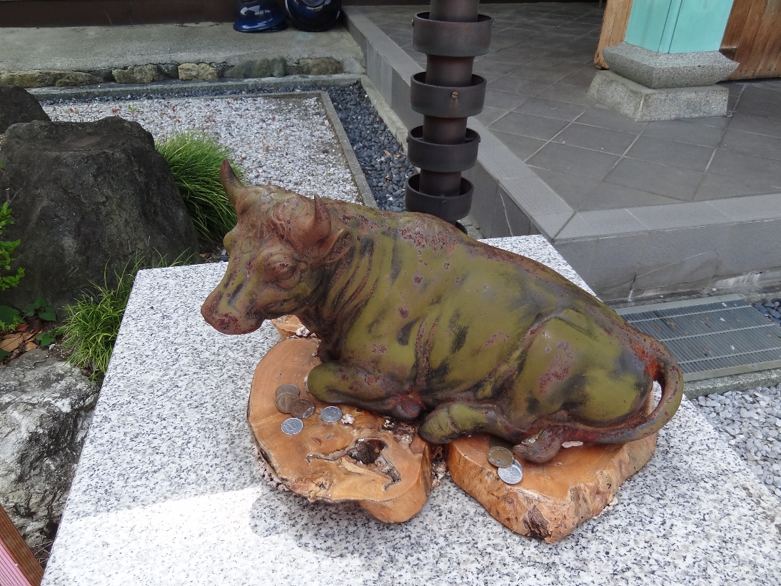 法長寺の本堂前の牛の像(2024/6/8) |