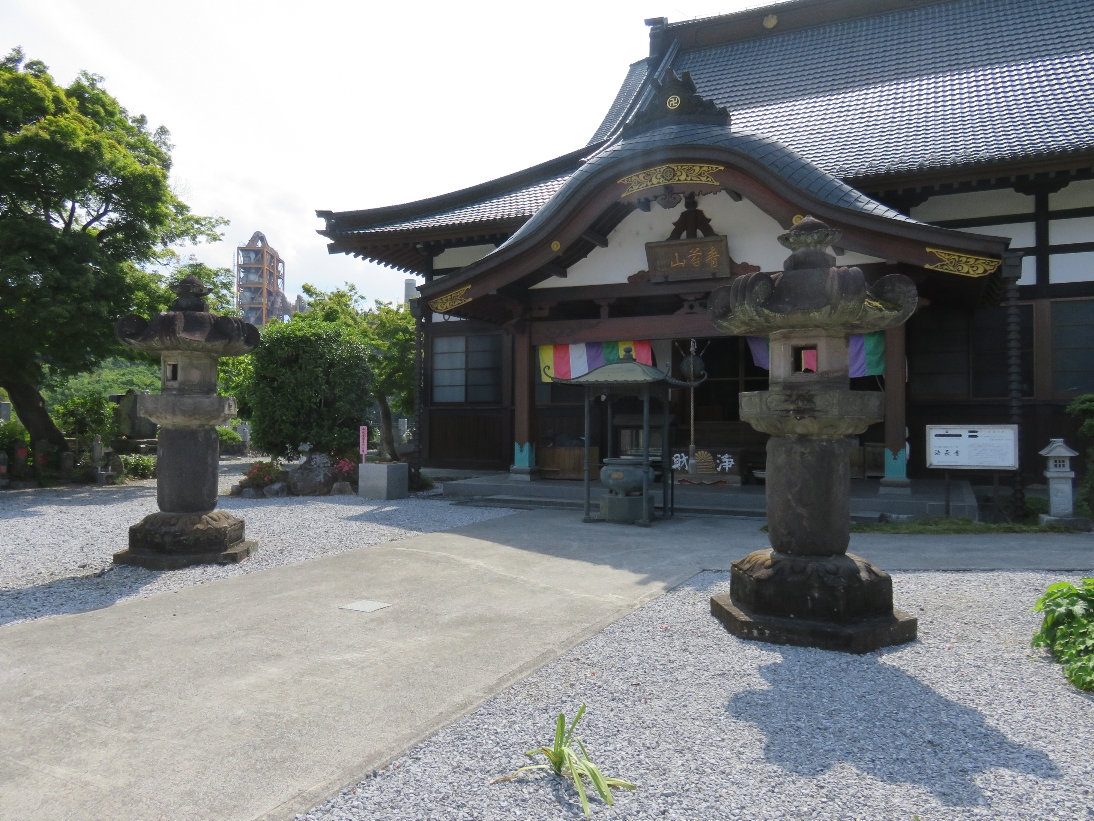 法長寺の本堂と手前の立派な灯籠(2024/6/8) |