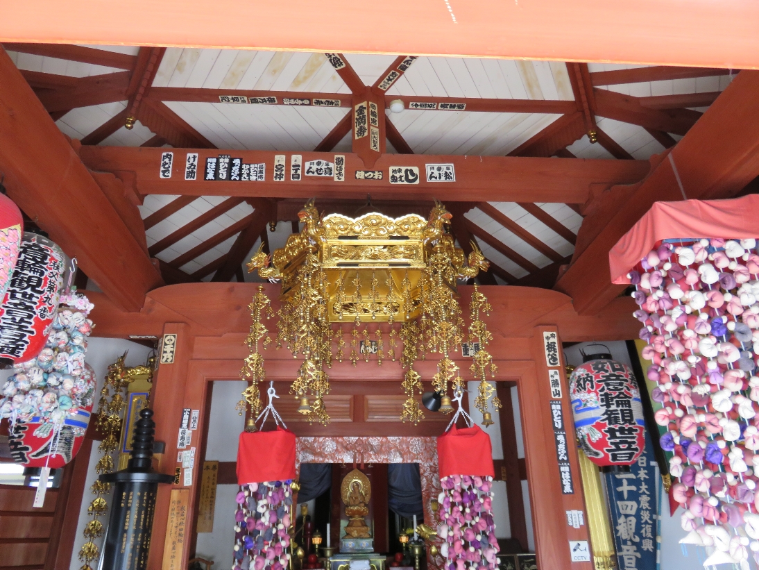 ●本尊(如意輪観世音菩薩)・・・・・御本尊は、6本の手を持ち右手を頬にあてる姿勢が特徴的な如意輪観音で、平安時代の僧・恵心僧都の作と伝えられています。如意輪観音は、その6本の手で六道(※)すべてに救いの手を差し伸べるとされ、智慧・財福・福徳授与・安産・延命のご利益があるとも言われています。(秩父札所連合会のHPより)