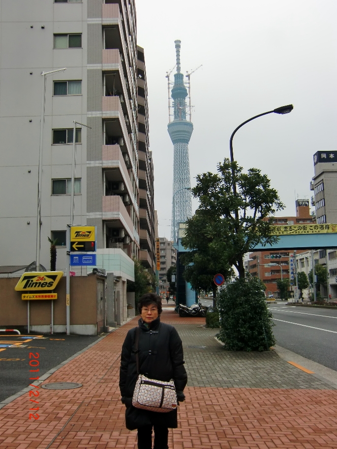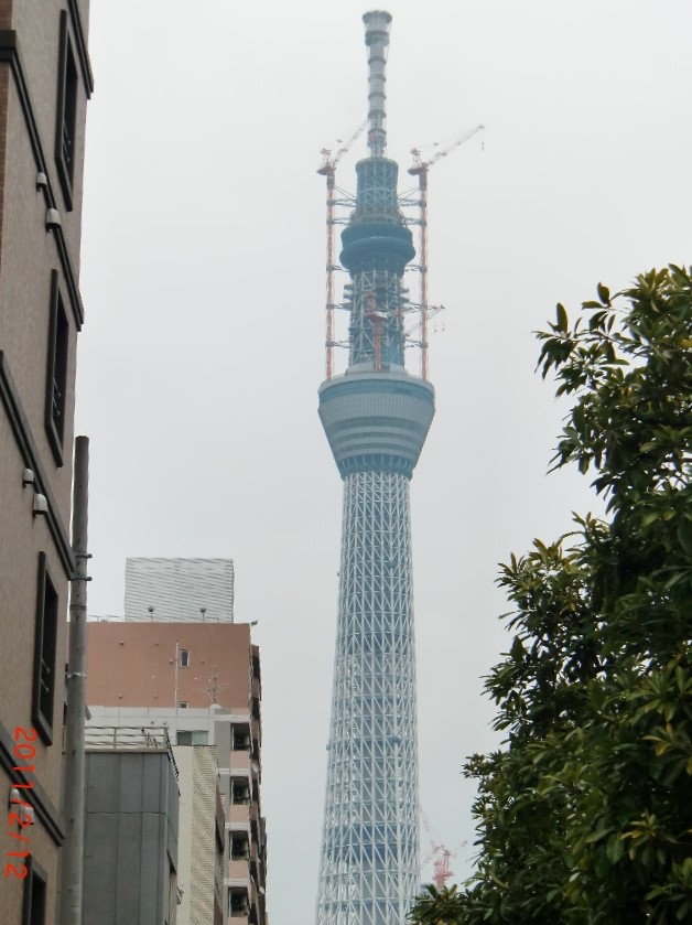 建設途中の東京スカイツリーのすぐ近くの洒落た家(2011/2/12) |
