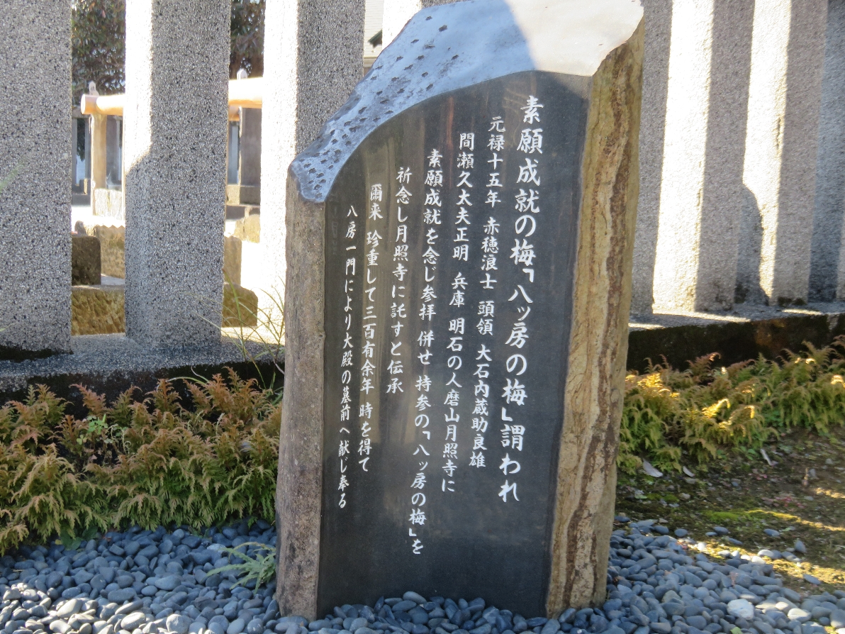 泉岳寺の素願成就の梅「八ツ房の梅」の謂われの説明版(2019/11/21) |