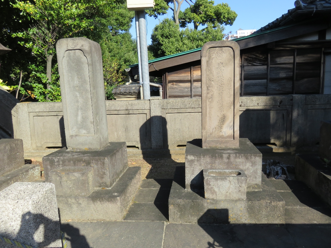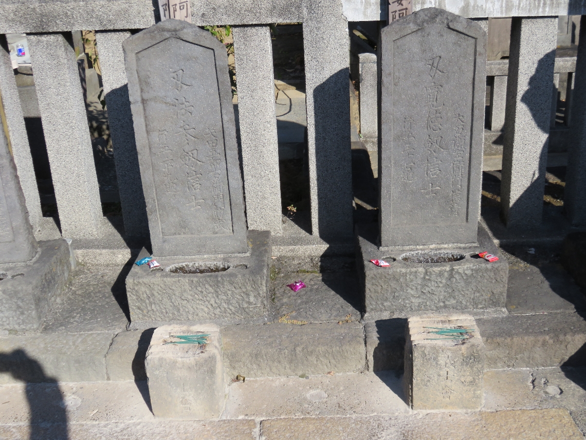 泉岳寺の赤穂義士の墓・・・右は村松喜兵衛秀直の墓でその左は杉野十平次次房の墓(2019/11/21) |